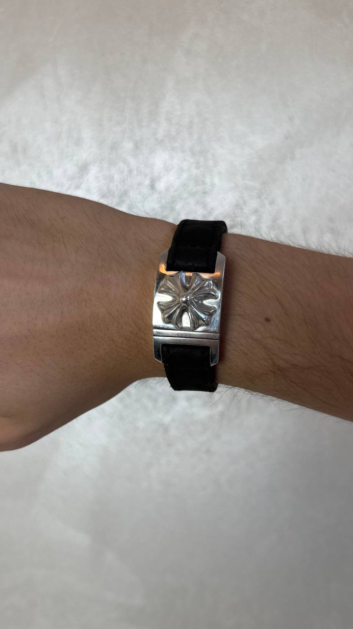 Chrome Hearts Silver Cross Leather Bracelet